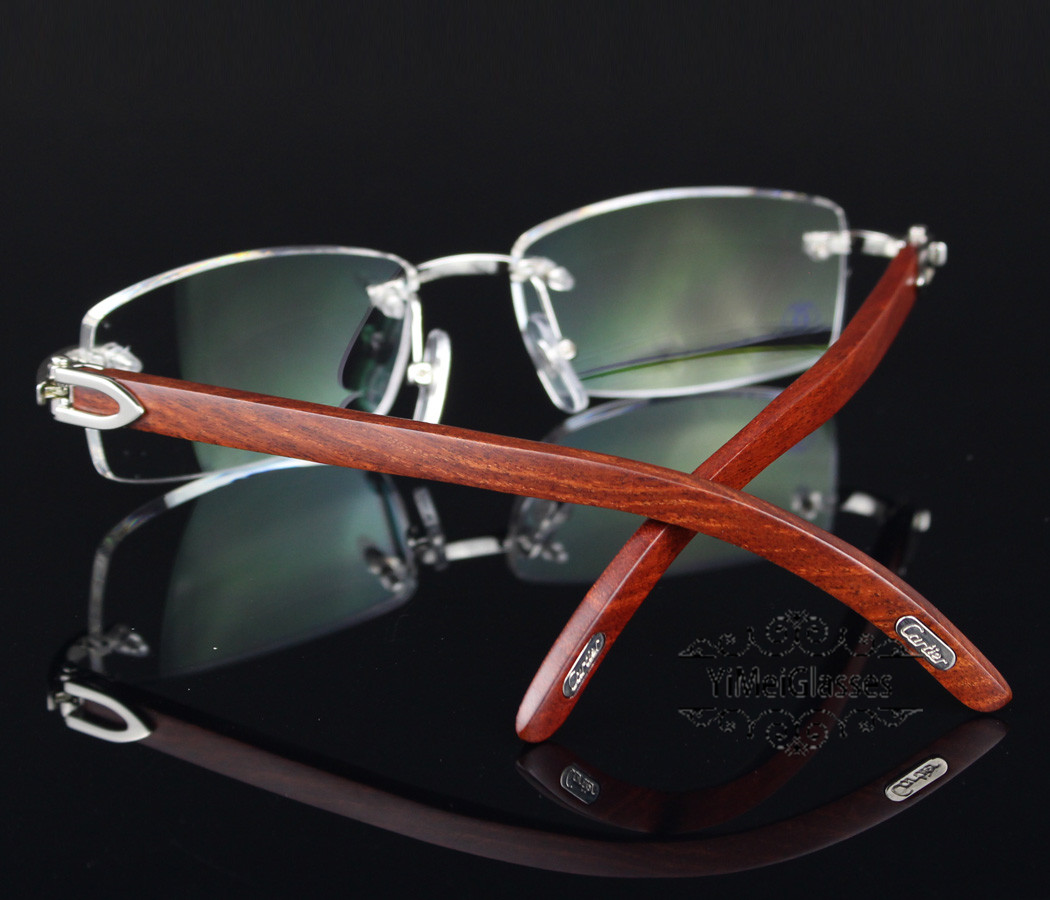 Cartier Eyeglasses Wooden Horn Platinum plating Rimless CT3524012
